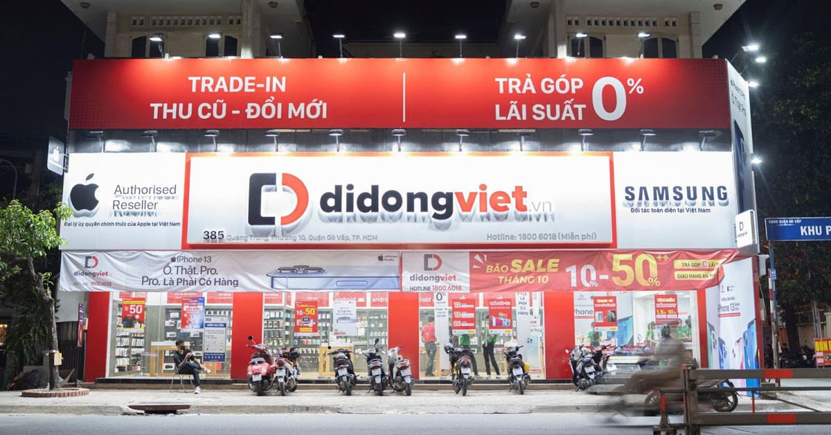 Nổi lên với chiến lược “Chuyển giao giá trị vượt trội”, Di Động Việt không chỉ cạnh tranh về giá mà còn tập trung vào các đặc quyền riêng cho khách hàng (ví dụ: dùng thử sản phẩm, bảo hành rơi vỡ). Chuỗi này đặc biệt mạnh tại khu vực phía Nam và trong phân khúc các dòng flagship Samsung, Apple.