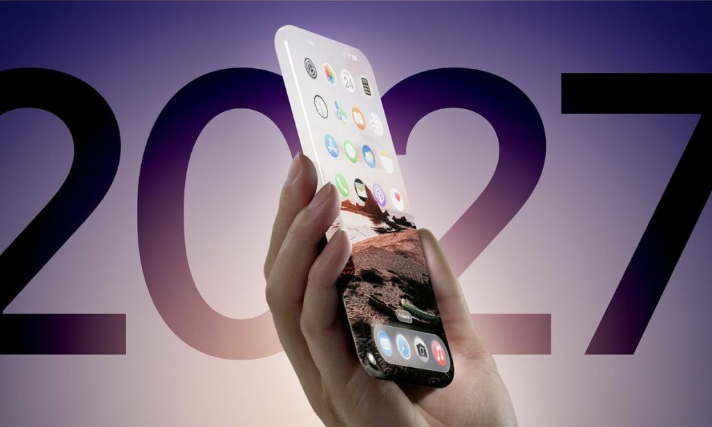 Trong năm 2027, Apple cũng sẽ công bố mẫu điện thoại đặc biệt, tập trung vào thiết kế, nhằm kỷ niệm 20 năm iPhone ra đời. Máy vẫn có dạng thanh nhưng có màn hình OLED không viền. Apple dự kiến sử dụng lớp khuếch tán ánh sáng hình miệng núi lửa trong màn hình để cân bằng độ sáng, đảm bảo đồng đều trên tất cả khu vực. Hãng cũng sẽ ứng dụng công nghệ nhận dạng tích hợp dưới màn hình, tức hệ thống Face ID, camera trước và các cảm biến được ẩn dưới bề mặt màn hình.