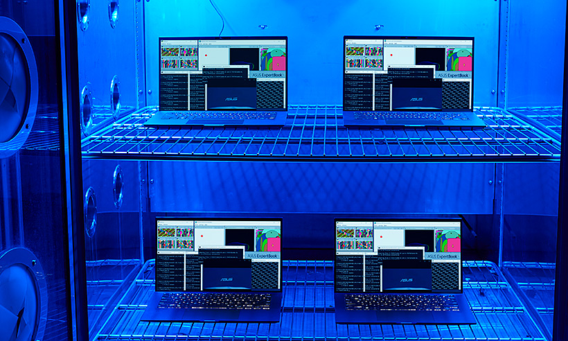Bài kiểm tra độ bền của dòng Asus Expert Series trong nhiệt độ cực lạnh. Ảnh: Asus