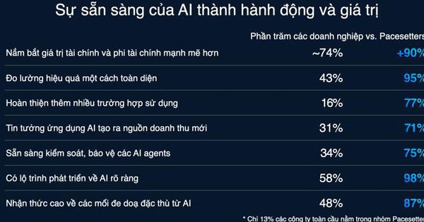 Mục tiêu tăng trưởng cụ thể: Gần như toàn bộ các doanh nghiệp thuộc nhóm Pacesetters toàn cầu (98%) đều có lộ trình AI rõ ràng (so với 58% tại Việt Nam).