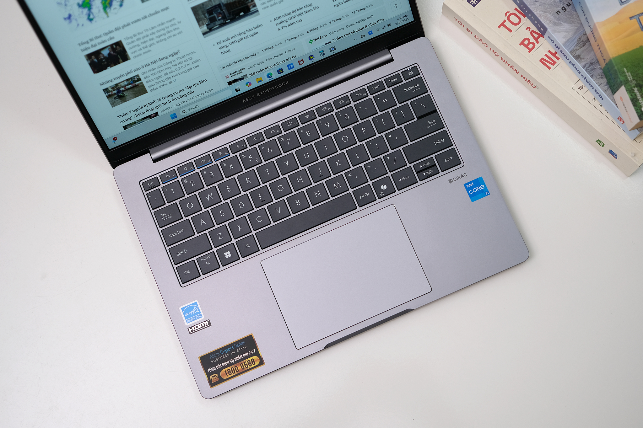 Pin có dung lượng 63 WH, sử dụng được khoảng 8,5 tiếng theo phần mềm Mobile Mark 2025. Con số này chưa bằng dòng Vivobook hay Zenbook nhưng đủ cho một ngày làm việc và nhỉnh hơn một số model trong phân khúc giá.