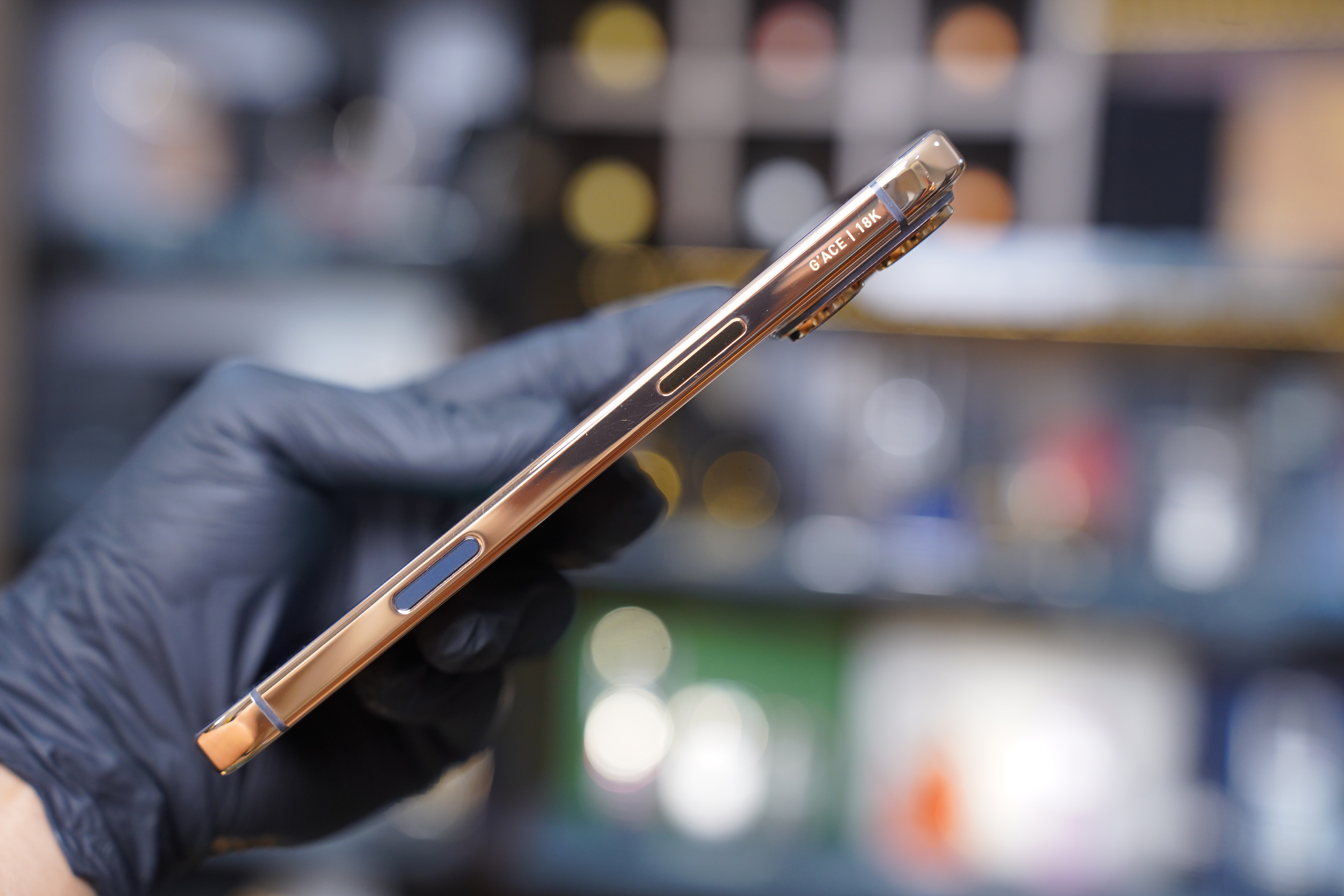 Các nút bấm cứng làm bằng titanium grade 5 và mạ vàng. Tuy nhiên, nút camera vẫn giữ nguyên, do trang bị công nghệ cảm ứng. iPhone 17 Pro Max có ba màu xanh, đen và cam, nên phần nút bấm camera và cổng sạc không đẹp bằng so với thế hệ trước có phiên bản vàng cát.