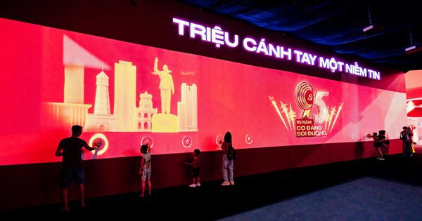 Với trải nghiệm Sách tương tác “Biên niên sử Đảng”, khách tham quan có thể “chạm tay vào lịch sử”. Chỉ cần chạm nhẹ các biểu tượng, lập tức, các thông tin, hình ảnh, bài viết sẽ được “lật giở”. Công nghệ mapping, cảm ứng và mã QR này khiến những con số, sự kiện trở nên trực quan, đặc biệt thu hút giới trẻ.