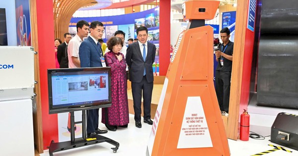Vingroup giới thiệu robot hình người VinMotion với khả năng giao tiếp linh hoạt, tương tác thông minh và ghi nhớ thông tin người đối diện, tạo ấn tượng với khách tham quan.