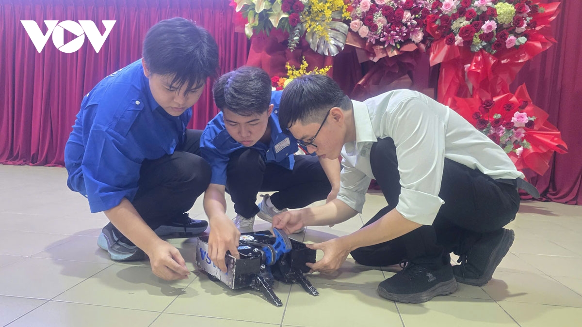 Ông Phong nói: “Chế tạo robot, nếu các em chỉ áp dụng nghề mình học thôi sẽ không được mà phải biết thêm về cơ khí chế tạo, ô tô, về cơ điện tử, điện tử, công nghệ thông tin… do vậy các em phải nỗ lực học tập. Đặc biệt là bùng nổ về công nghệ 4.0, AI. Khi các em tổ chức làm việc, thiết kế chế tạo thì bắt buộc phải sử dụng công nghệ, trong đó trí tuệ nhân tạo hiện nay là công cụ giúp các em rất nhiều. Sau khi các em sản xuất thử nghiệm, chiến đấu và làm nâng cao hoàn thiện thì các em đã học được rất nhiều điều.”