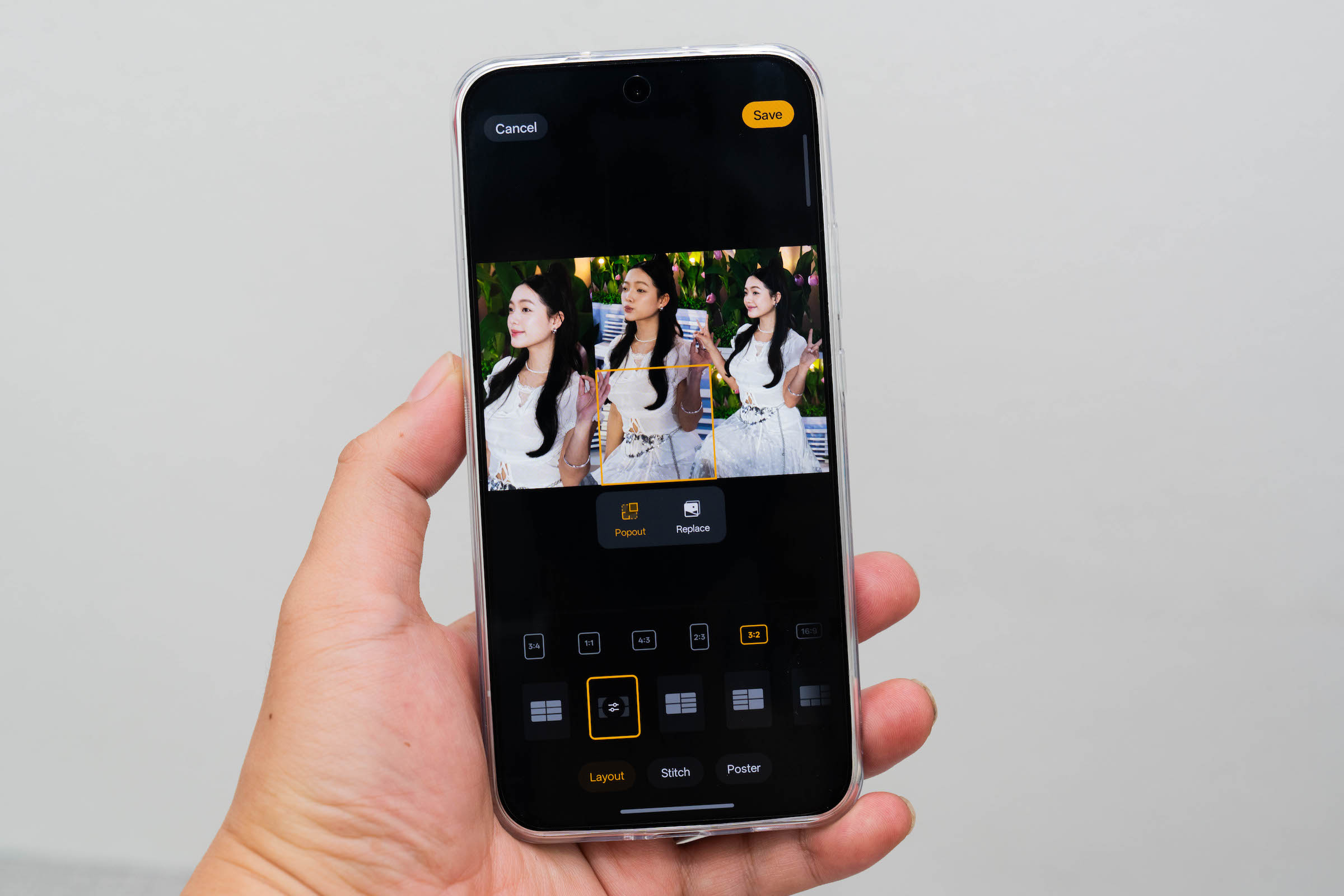 Camera trước của cả ba đều có độ phân giải 50 megapixel với ống kính cải tiến cho góc chụp 100 độ (0.6x) rộng hơn, đủ để selfie toàn cảnh mà không cần dùng gậy. Đèn flash phía sau hỗ trợ AI giúp chụp chân dung thiếu sáng, chủ thể không bị cháy da hay hiện tượng mắt đỏ, tạo độ sâu gần giống việc sử dụng đèn chuyên dụng. Màn hình ngoài việc tăng độ sáng lên tối đa để chụp selfie thiếu sáng còn cho phép chuyển màu để tạo hiệu ứng tông màu mà người dùng thích.