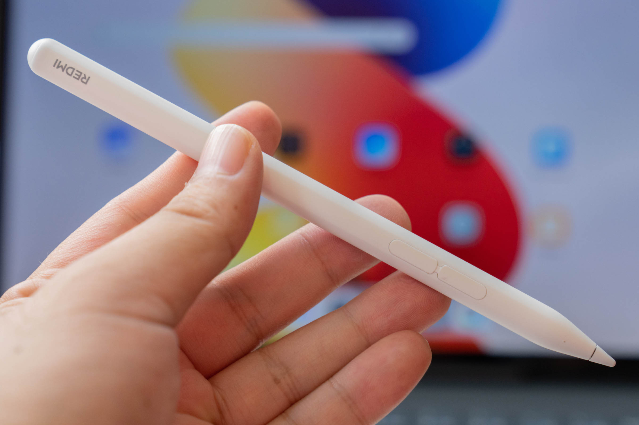 Bút cảm ứng là trang bị không thể thiếu trên các mẫu tablet hiện tại. Kích thước Redmi Smartpen nhỏ gọn như bút chì, cho cảm giác cầm và sử dụng thuận tiện. Tuy nhiên, màn hình dạng trơn chưa cho trải nghiệm sử dụng viết tốt bằng màn hình nhám và người dùng phải kết nối thủ công với bút này giống bàn phím.