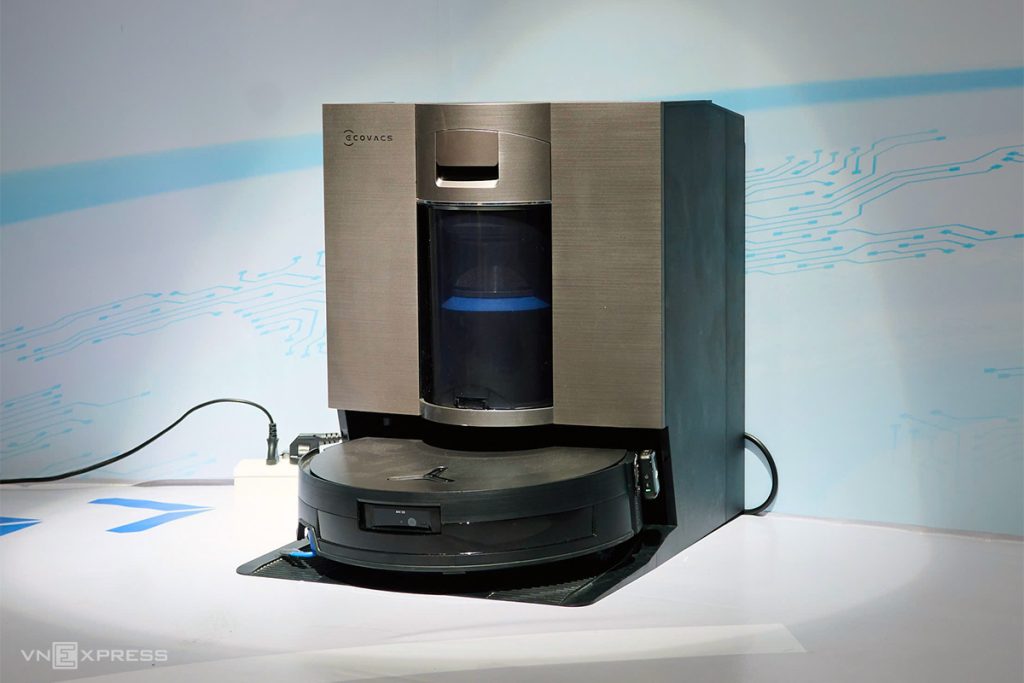 Hộc đựng bụi trên dock của Deebot X11 OmniCyclone thay vì túi đựng như hầu hết robot khác hiện nay. Ảnh: Tuấn Hưng