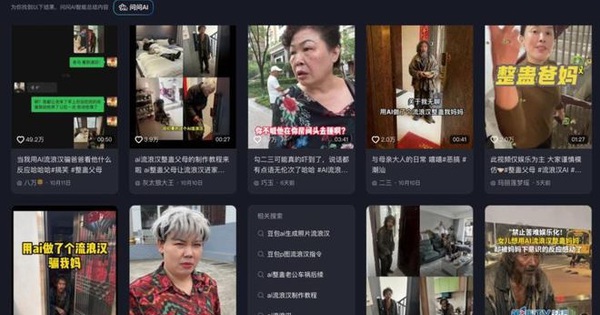Ảnh chụp màn hình kết quả tìm kiếm trò đùa “ăn mày AI đột nhập” trêu chọc cha mẹ trên một nền tảng video ngắn của Trung Quốc. Ảnh: Sina