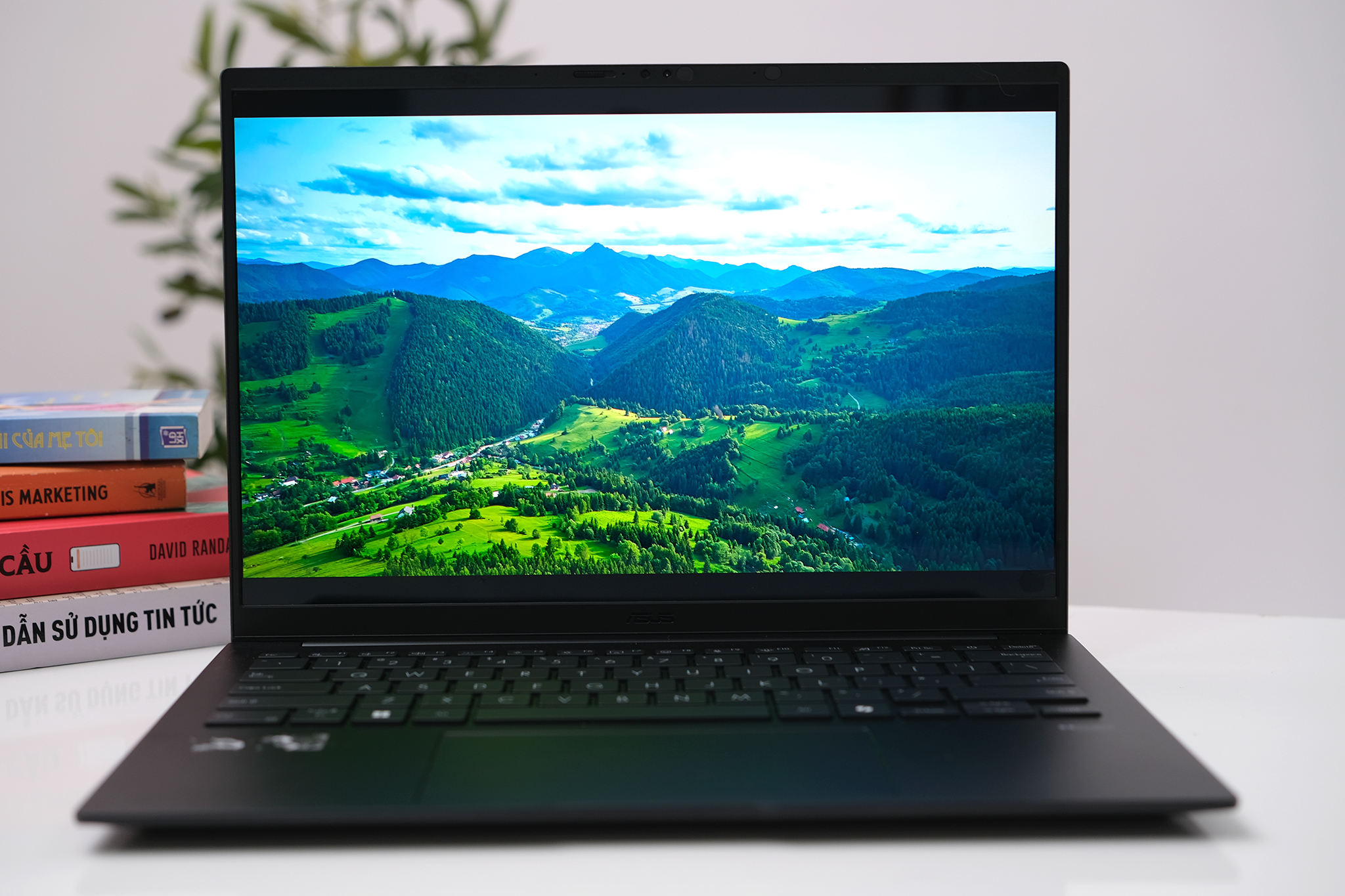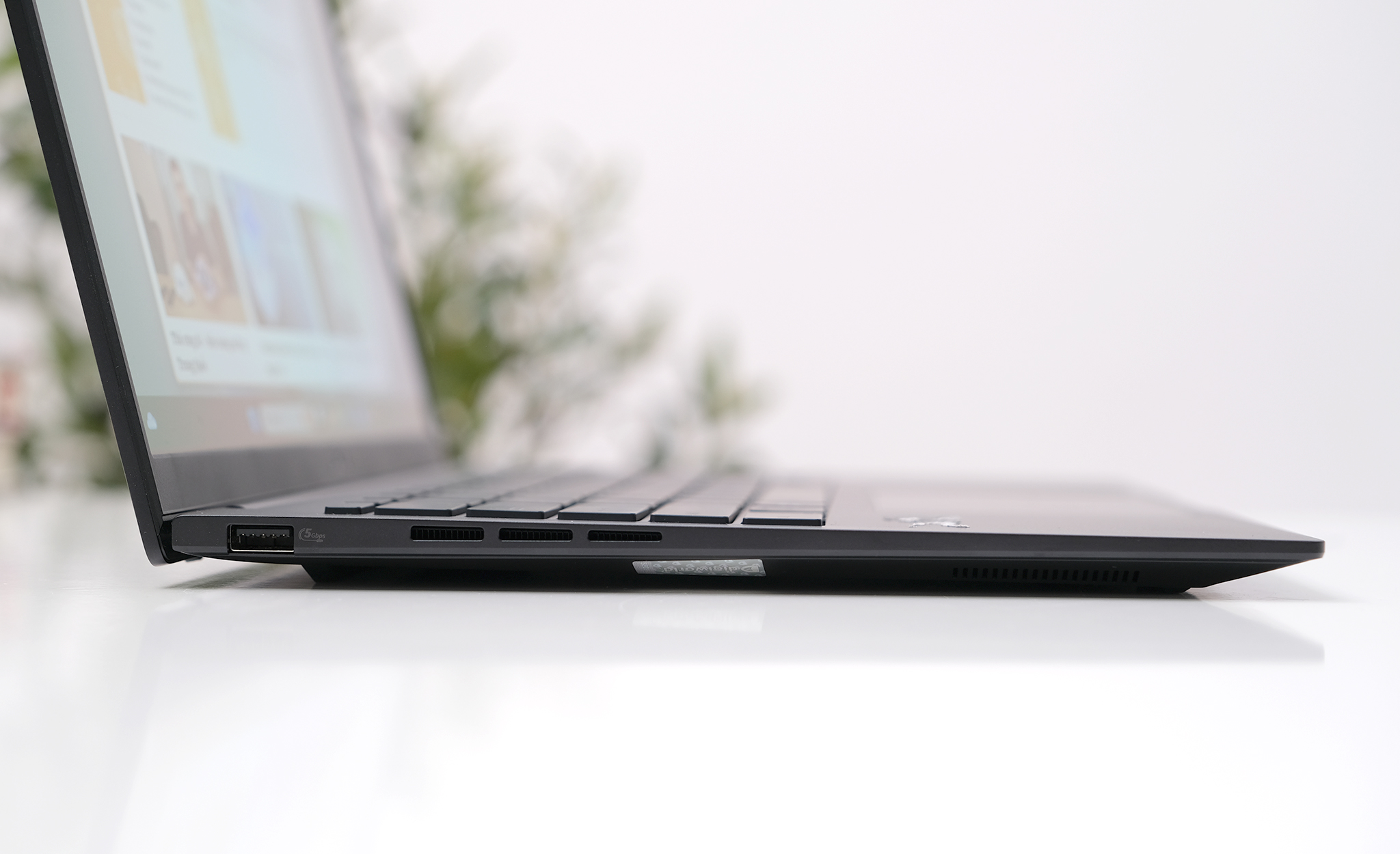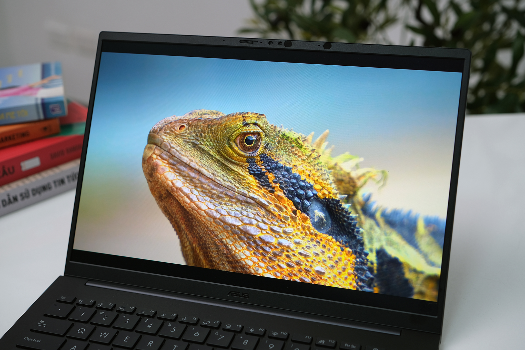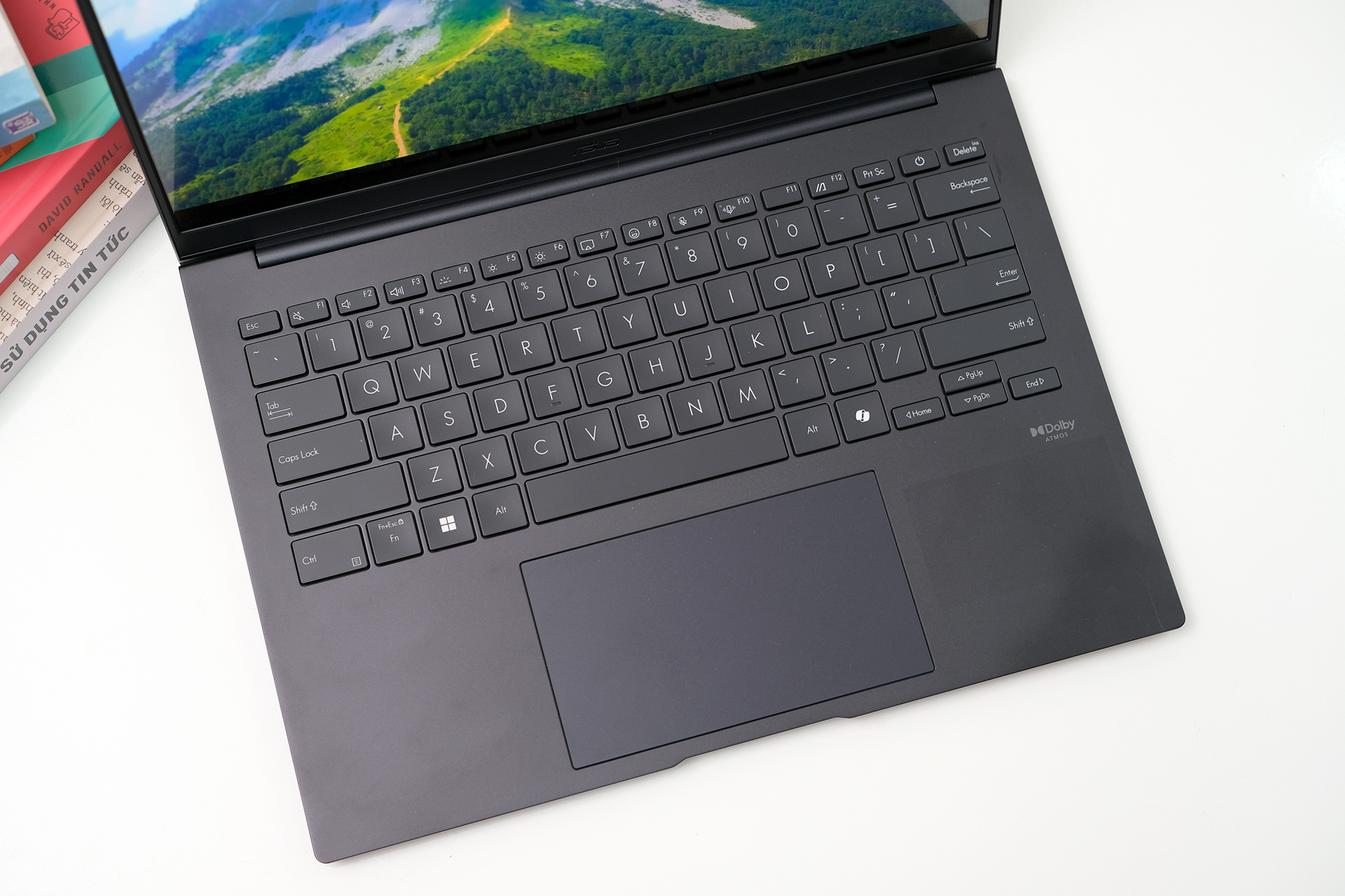 Tấm nền OLED trên máy có lợi thế lớn về khả năng thể hiện màu đen sâu tuyệt đối, sử dụng Asus Lumina OLED có thể hiển thị 100% dải màu DCI-P3 cho màu tươi tắn. Thử nghiệm ở các góc nhìn khác nhau, rộng khoảng trên 160 độ, chi tiết vẫn rõ, màu sắc không bị biến đổi ở các góc hai bên.