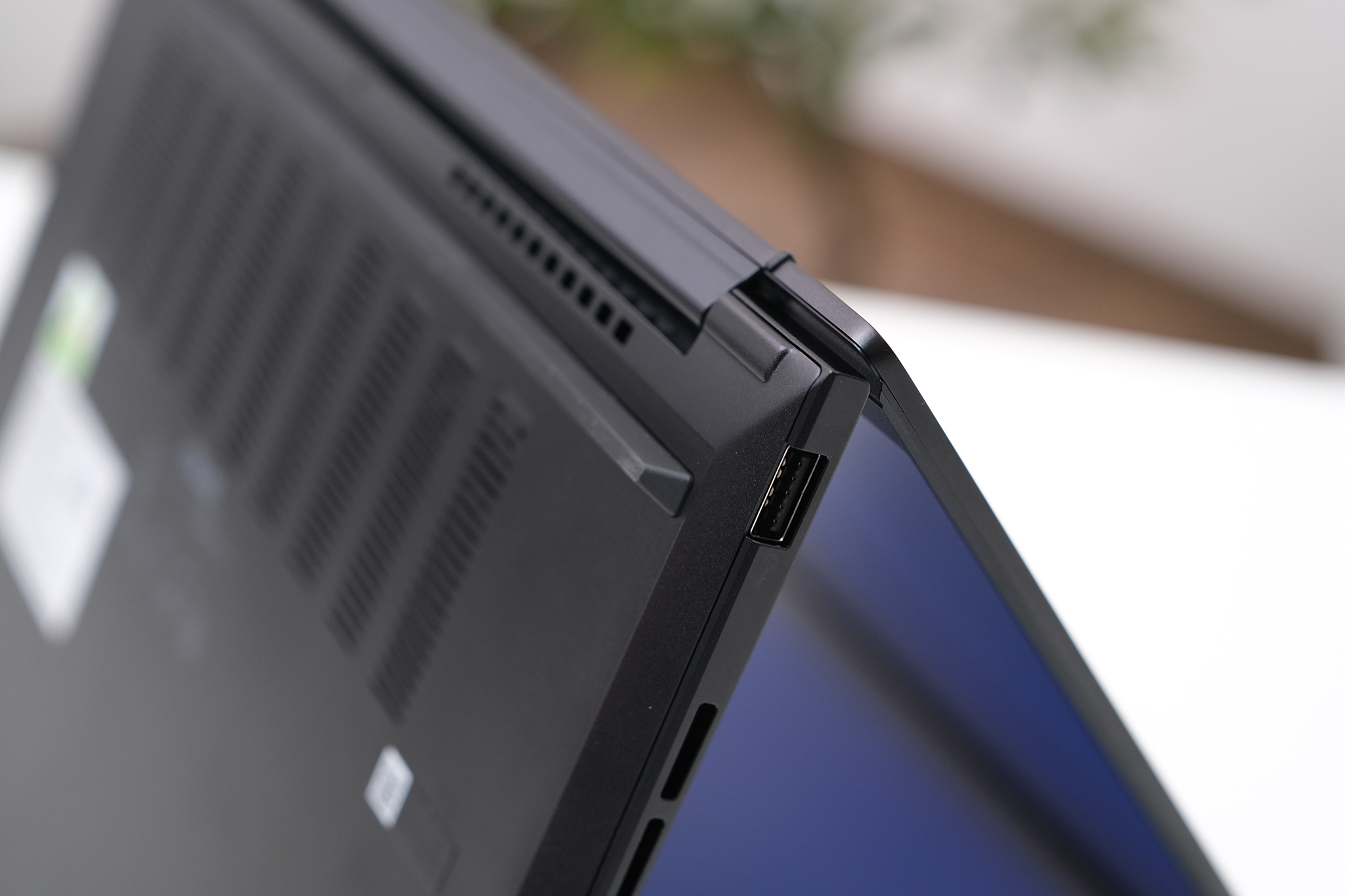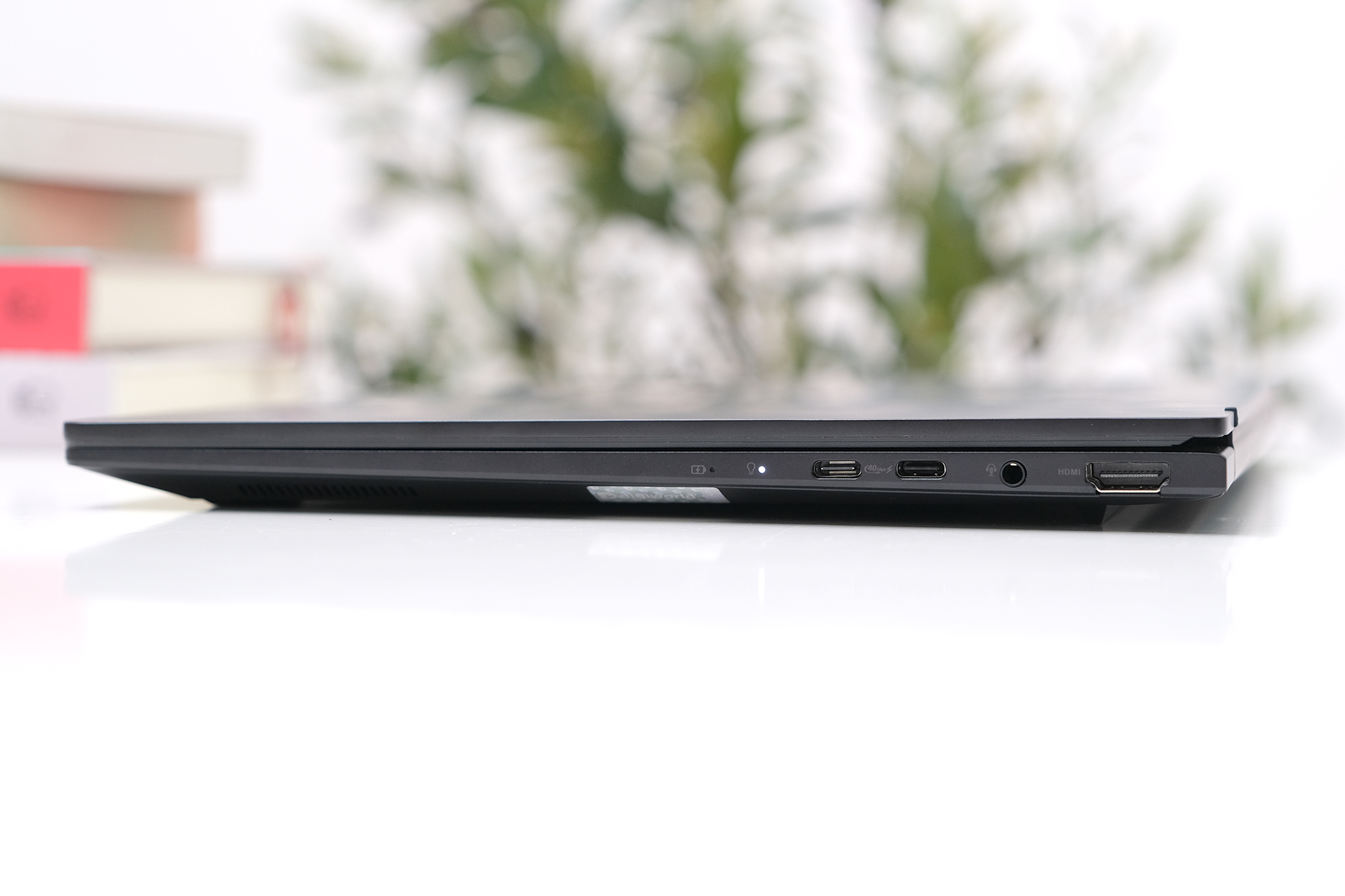 Máy có một cổng USB-A truyền thống và hai cổng USB-C nhưng thông số khác nhau với, đều có tính năng sạc và hỗ trợ xuất màn hình ngoài và tốc độ truyền dữ liệu lần lượt là 10 Gb/giây và 40 Gb/giây. Ngoài ra còn có thêm cổng HDMI 2.1, giắc cắm audio 3.5 mm và đèn báo nguồn nhỏ.